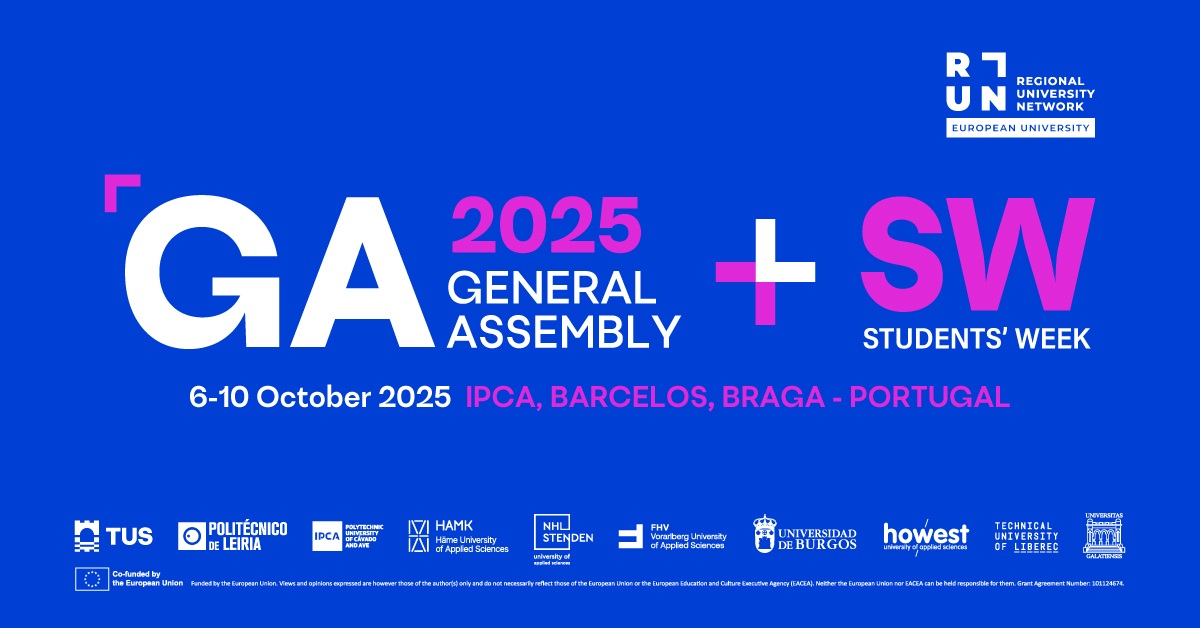 The Polytechnic University of Cávado and Ave (IPCA) will host the fifth RUN-EU General Assembly (GA) and Students’ Week (SW) from 6 to 10 October 2025, in Barcelos, Portugal, with a total of more than 250 registrations.